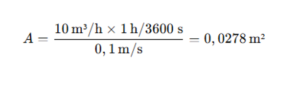 - Se você tem uma vazão de 10 m³/h e deseja um fluxo de 0,1 m/s através da tela, a área necessária seria calculada da seguinte maneira: