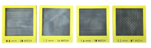 - O número de fios por polegada ou a abertura da malha é especificado, com telas de alta malha (fios mais finos e mais densos) sendo usadas para capturar partículas menores.
